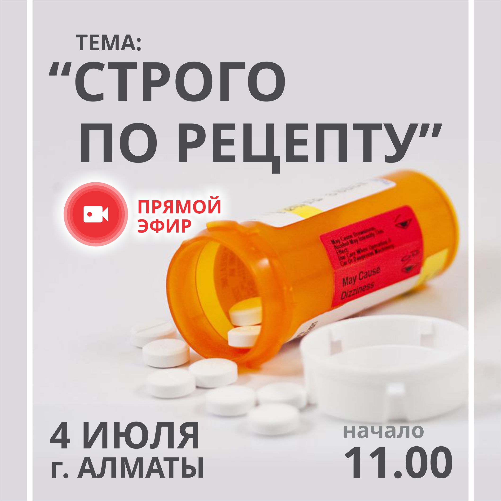 2019 жылғы 4 шілдеде Қазақстан Республикасы Денсаулық сақтау министрлігі Тауарлар мен көрсетілетін қызметтердің сапасы мен қауіпсіздігін бақылау комитетінің Алматы қаласы бойынша Тауарлар мен көрсетілетін қызметтердің сапасы мен қауіпсіздігін бақылау департаменті Дәрілік заттар мен медициналық бұйымдарды сараптау ұлттық орталығымен бірлесіп фармацевтикалық және медициналық қоғамдастықпен рецептуралық дәрілерді босату мәселелері жөнінде кездесу өткізеді.