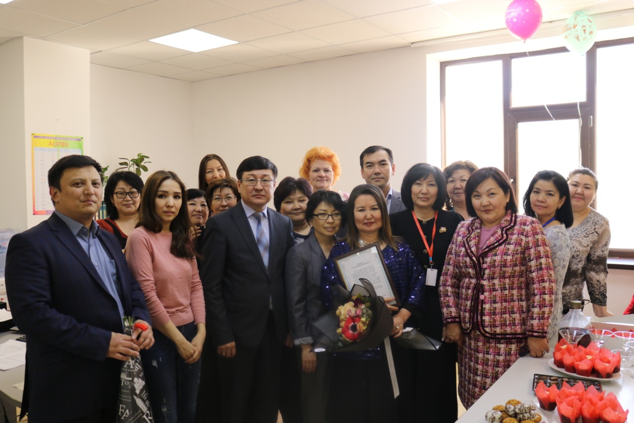 01.03.2019В Национальном центре экспертизы лекарственных средств, изделий медицинского назначения и медицинской техники МЗ РК (НЦЭЛС) поздравили с юбилеем Гульзиру Сергазы – главного специалиста Управления по переводу и развитию государственного языка.