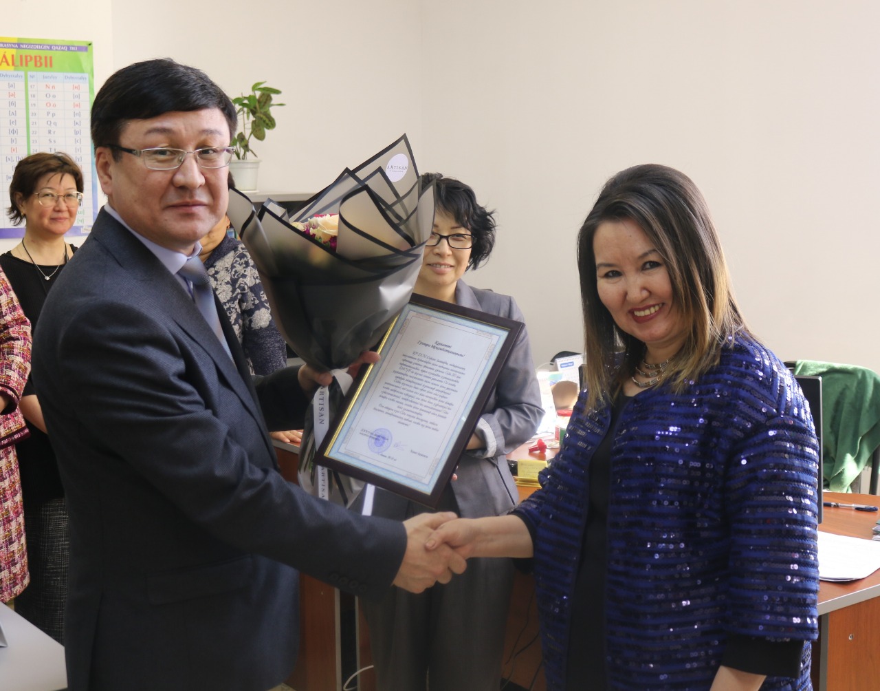 – Одно из главных качеств Гульзиры Мукамбетқалиевной – это высокая самоотдача и профессионализм, с которыми она берется за любое дело, стараясь озарить рабочие будни ореолом любви к родному языку, духовности и обогащения, неустанного поиска, – сказал исполняющий обязанности генерального директора НЦЭЛС Канат Ержанов.