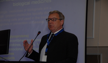 Борут Штрукель Ph.D., профессор, руководитель подразделения биотехнологии факультета фармации Университета г. Любляна, Словения, преподаватель курса фармацевтической биотехнологии выступил с докладом, в котором очень подробно и доступно рассказал об особенностях производства биологических препаратов, об их современной классификации и дальнейших перспективах применения в клинике.