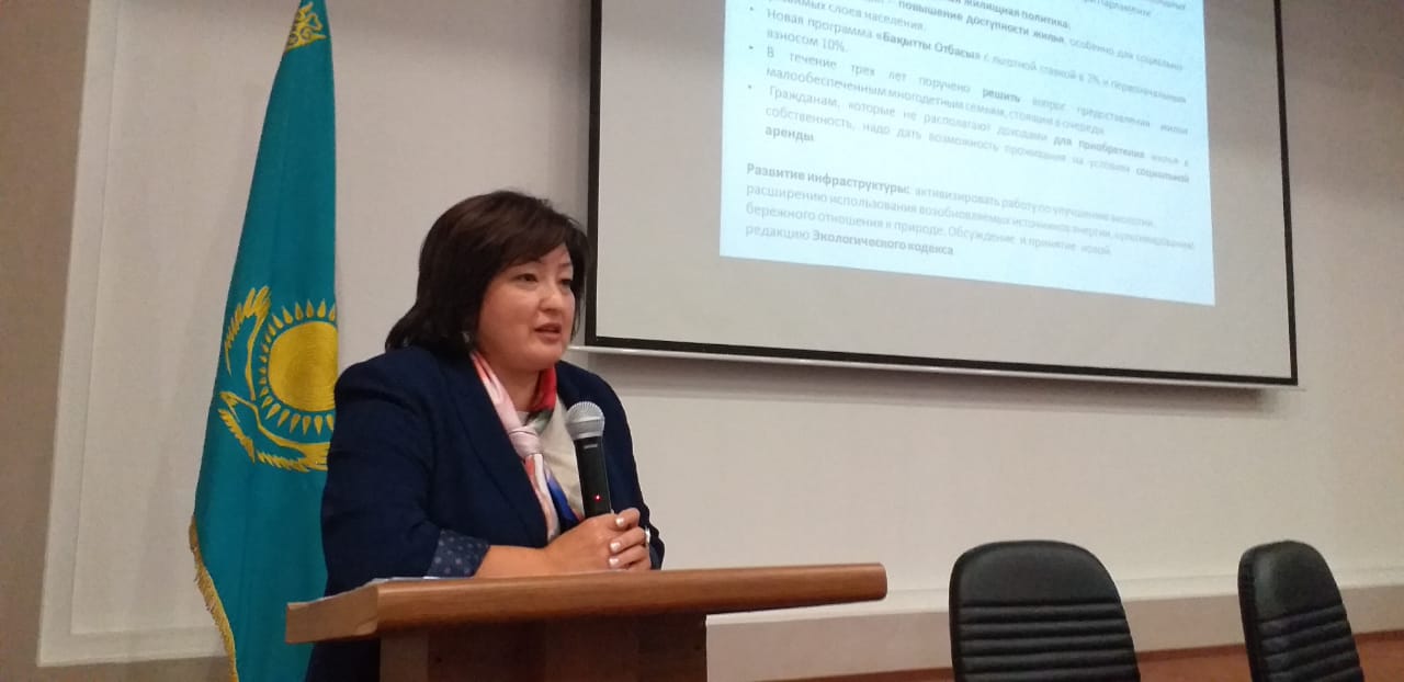 С основными положениями Послания Президента РК и проектом Общенационального плана по его реализации ознакомила коллектив координатор ТФ Алматы Бахыт Абдиманова.