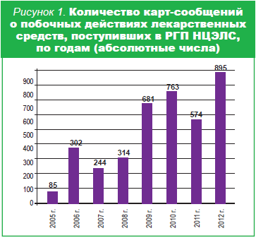 В настоящее время разработаны различные методы оценки эффективности и безопасности лекарственных препаратов c момента фармацевтической разработки до широкого применения в медицинской практике (спонтанные сообщения, клинические испытания, активный мониторинг стационаров, рецептурный мониторинг, случай-контроль, когортные исследования, мета-анализ и другие). Основным методом в работе практически всех служб мониторинга безопасности лекарственных средств во всех странах мира является метод спонтанных сообщений (жёлтые карты), в том числе и в нашей стране. «Желтая карта» – хорошо известная форма, которая заполняется врачом в случае возникновения какой-либо побочной реакции на препарат независимо от того, описан он в инструкции по применению или нет. Не только врач, но и больной, и его родственники должны сообщать о возникшей нежелательной реакции в группу мониторинга побочного действия лекарственных средств РГП на ПХВ «Национальный центр экспертизы лекарственных средств, изделий медицинского назначения и медицинской техники» МЗ РК для изучения последним причинно-следственной связи возникновения побочной реакции. На основании анализа полученных сообщений министерством здравоохранения могут быть приняты соответствующие регуляторные меры для обеспечения наибольшей безопасности приема препаратов: внесение изменений и дополнений в инструкции по медицинскому применению препаратов, перевод лекарственных средств из безрецептурных в рецептурные. В ряде случаев принимаются решения о необходимости проведения дополнительных доклинических и клинических исследований, приостановке действия регистрационного удостоверения и даже отзыве препарата с фармацевтического рынка. Результаты мониторинга побочных действий лекарственных средств в нашей стране свидетельствуют об отсутствии тесного и эффективного сотрудничества между всеми партнёрами в области ФН (МЗ РК, медицинскими и фармацевтическими учреждениями, ассоциациями, СМИ, пациентами и др.). Количество и качество поступающих сообщений не всегда позволяют объективно оценить безопасность применения препаратов и принять соответствующие регуляторные меры. На рисунках 1,2 видно, что с каждым годом количество поступающих карт-сообщений увеличивается, но активность медицинских и фармацевтических работников в данном процессе остаётся низкой. Среди причин, побуждающих врачей не сообщать о побочных реакциях, наиболее распространены следующие: «Некогда, не встречали, страшно – вдруг накажут». В этой ситуации хочется еще раз призвать врачей к ответственности и напомнить о том, что тот или иной нежелательный эффект препарата может возникнуть и у других пациентов с ещё более тяжёлыми осложнениями, которые легче предупредить, чем бороться с ними.