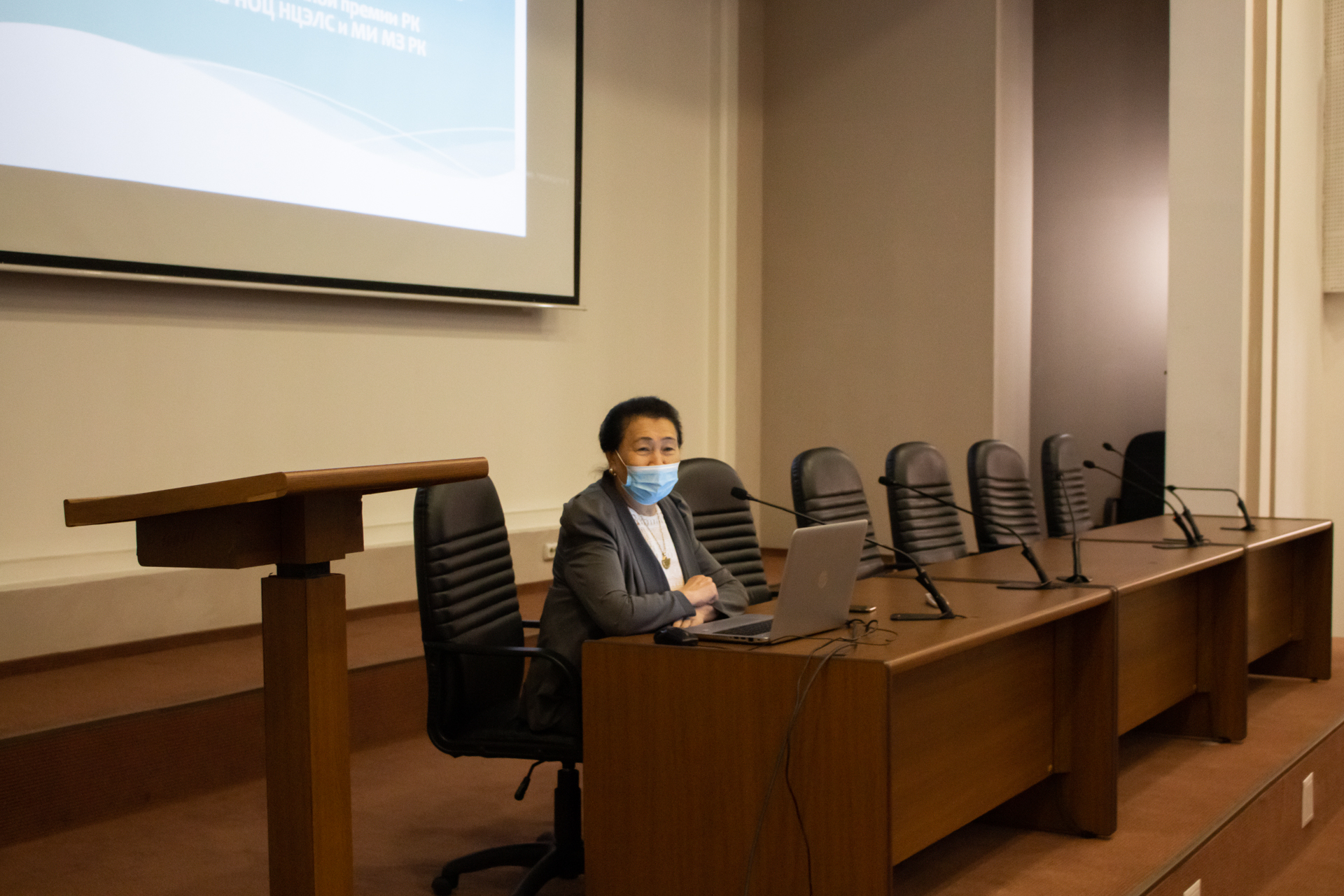 Спикером выступила руководитель Научно-образовательного центра, д.м.н., профессор, академик НАН РК, лауреат государственной премии РК - Раиса Кузденбаева.