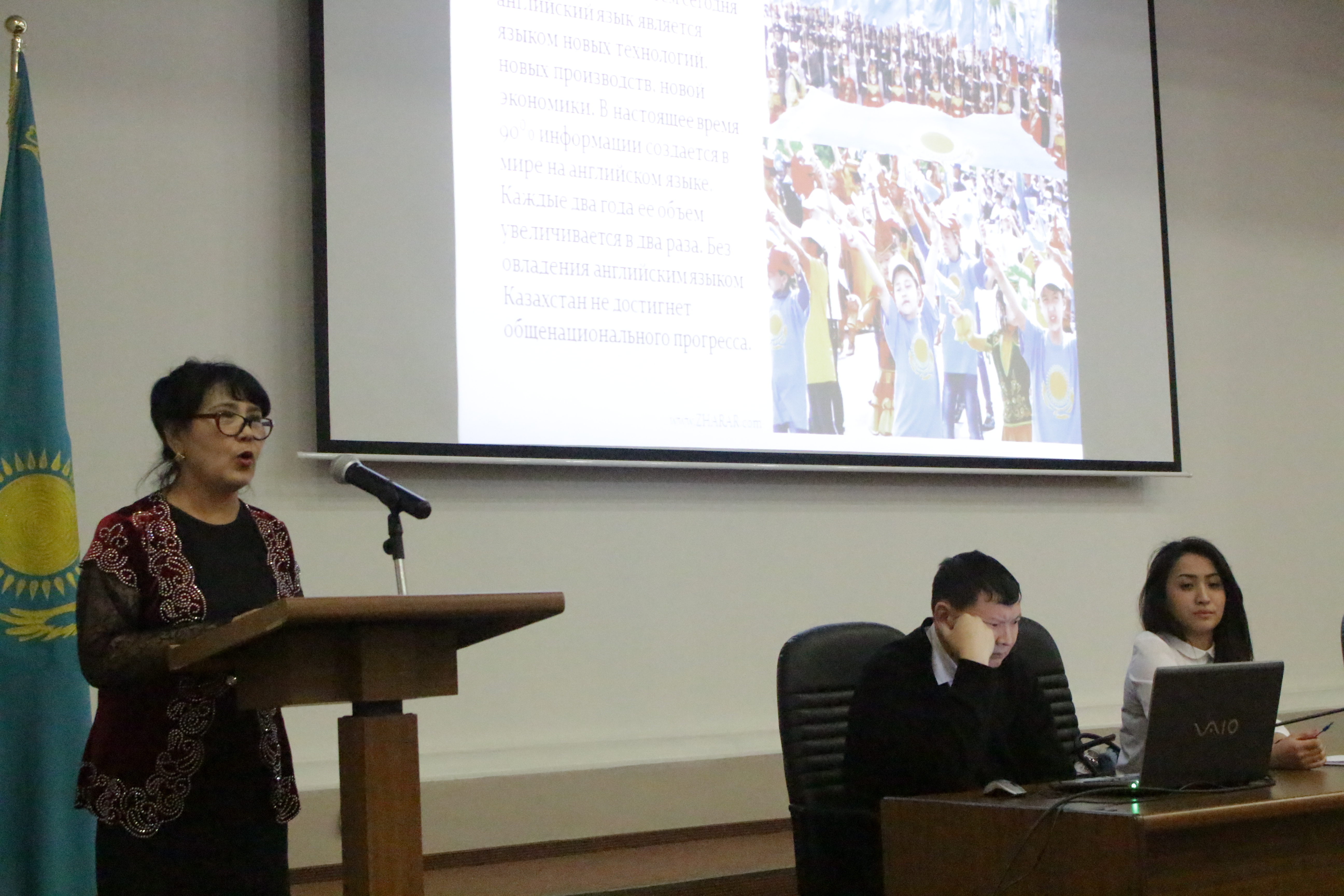 «Вы понимаете, что наша Республика многонациональная и здесь проживает более 130 народов и этносов. Мы единый Казахстанский народ. Во всех организациях вводят систему трехъязычия. Как Вам известно, в акиматах функционируют курсы по изучению языков для народа Казахстана, уделяется большое внимание трем языкам: казахский – как государственный язык, английский – как международный язык и русский – как язык межнационального общения, также предлагаются изучать другие языки» - рассказала слушателям Закира Кокенова.