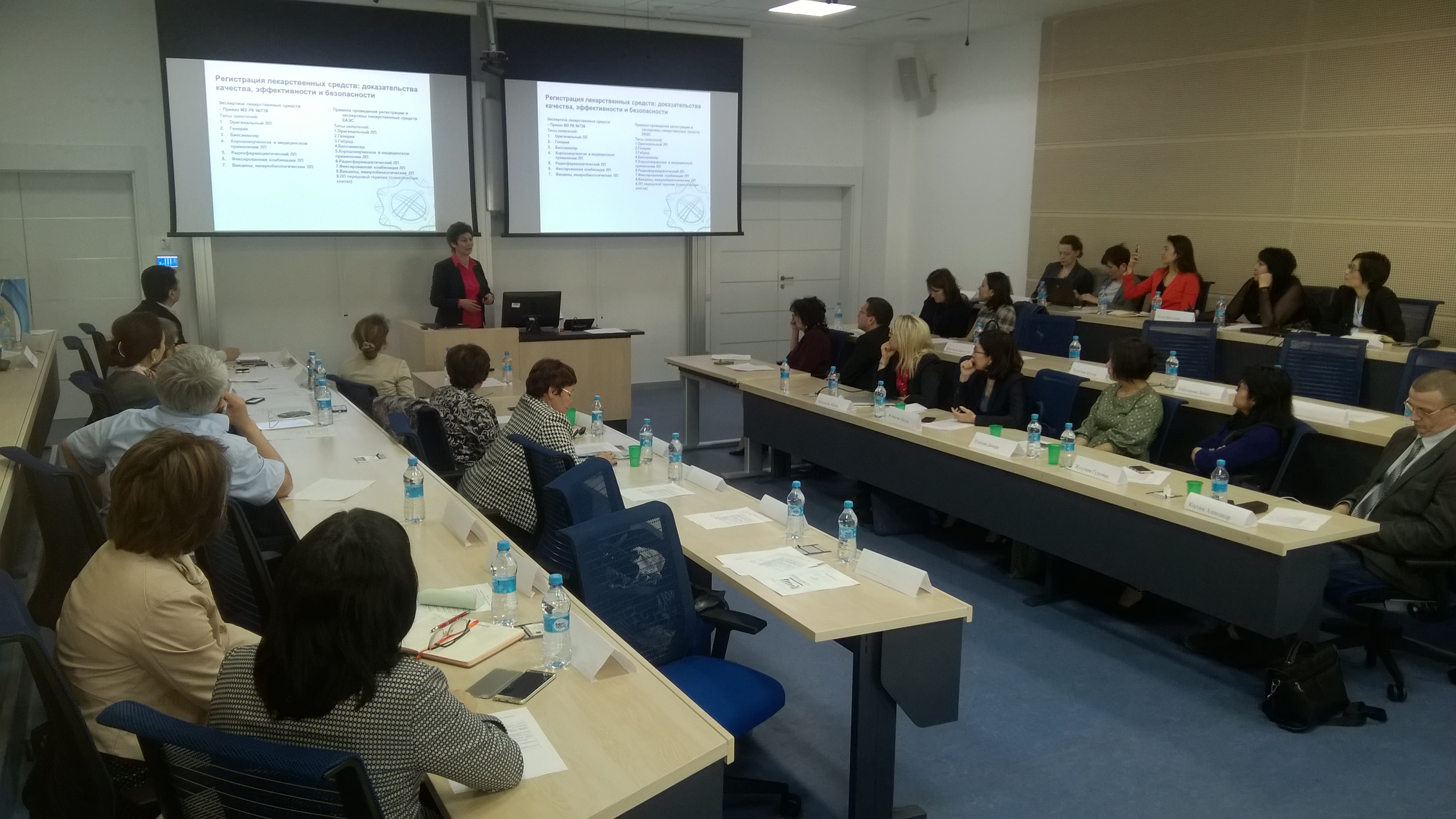 С приветственным словом к участникам встречи обратилась И.О. Председателя Комитета фармации Министерства здравоохранения Республики Казахстан Лариса Юн-Бойевна Пак. Она поблагодарила модератора за организацию встречи и отметила, что «Очень много вопросов по качеству лекарственных средств и организации контроля цен, как вы сами могли убедиться на Парламентских слушаниях. И ваш семинар, как и проводимые сейчас по стране встречи участников рынка, дают возможность открытого обсуждения и выявления всех точек зрения заинтересованных сторон».