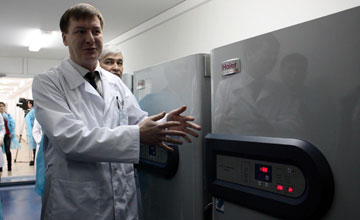 Здесь используется оборудование нового поколения, не имеющее аналогов в Казахстане, отметил он. «Например, времяпролетный масс-спектрометр - это единственный прибор на территории Казахстана. Собственно, если посчитать количество таких приборов по постсоветскому пространству, их наберется не больше сотни. Это прибор Bio-Plex 3 D (проточный лазерный иммуноанализатор нового поколения), который является практически единственным на территории постсоветского пространства», - уточнил заведующий лабораторией.