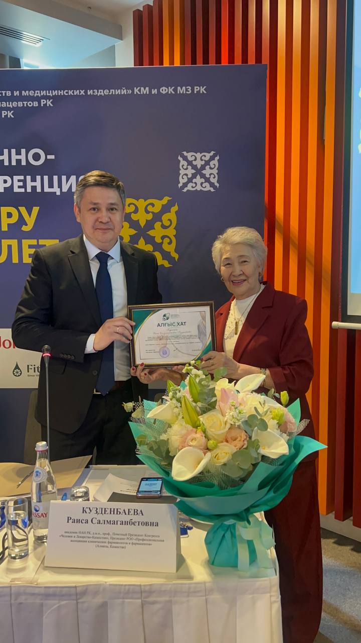 Особенным событием конференции стало поздравление Раисы Кузденбаевой с днем рождения. Раиса Салмагамбетовна – первая в Казахстане женщина-фармаколог, доктор медицинских наук, профессор, академик НАН РК, главный редактор журнала «Фармация Казахстана», лауреат Государственной премии РК, член Европейской ассоциации клинических фармакологов и терапевтов, почётная гражданка города Актобе.