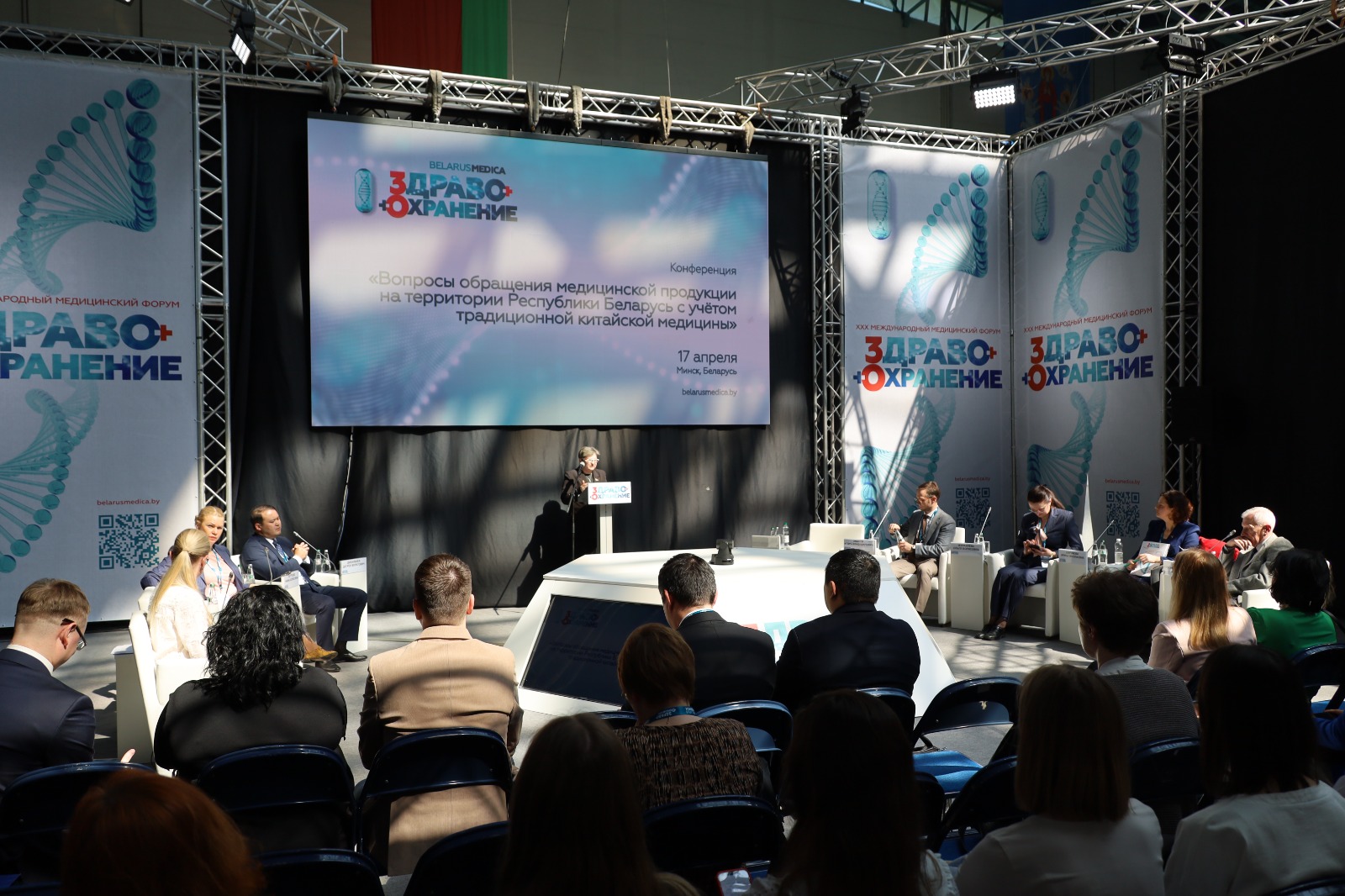 В рамках форума представители НЦЭЛС и МИ приняли участие в конференции «Вопросы обращения медицинской продукции на территории Республики Беларусь с учетом традиционной китайской медицины». Участники конференции обсудили особенности регистрации и обращения медицинской продукции в странах ЕАЭС, а также новые подходы в обеспечении качества и безопасности медицинских изделий и лекарственных средств.