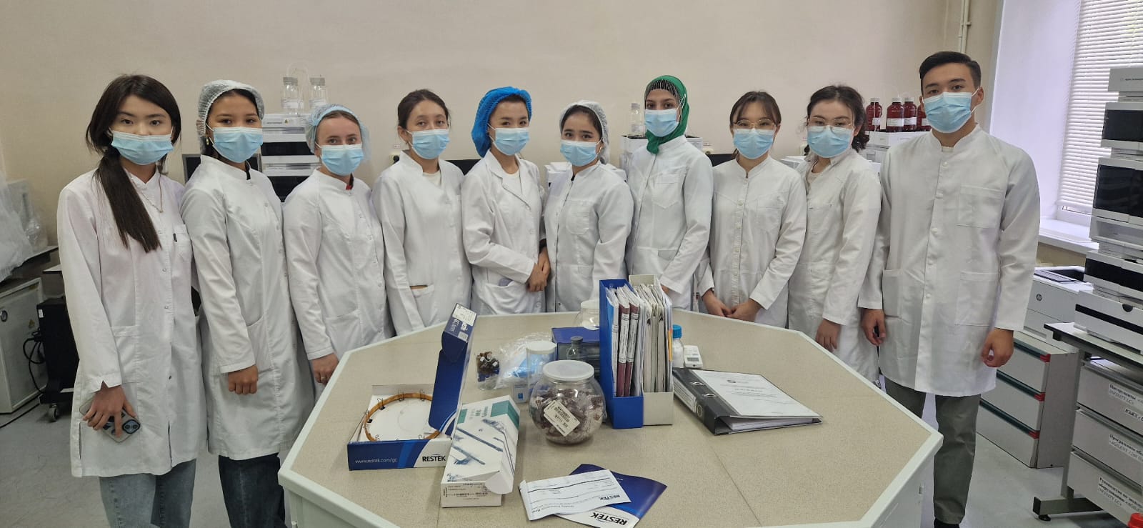 В Таразе в ходе практики руководитель отделения Хасима Даурбаева ознакомила студентов с подразделениями испытательной лаборатории, функциями отделения, законами, регламентирующими работу лабораторий, правилами безопасности. Координатор отделения Асель Жакашбековна и специалист I категории Бекнар Бериковна провели анализ растворов для парентерального применения, продемонстрировали навыки работы с методами высокоэффективного жидкостного хроматографа, тонкослойного хроматографа, спектрофотометрии, поляриметрии, рефрактометрии и др., показали количественное и качественное определение лекарственных средств, определили виды добавок и ознакомили практикантов с токсикологическими (биологическими) методами. Студентам была предоставлена возможность связать теорию и практику, выполнять лабораторные работы, дополнять свои знания методами, соответствующими современным требованиям, с последующим подведением итогов практики и проверкой дневников студентов.