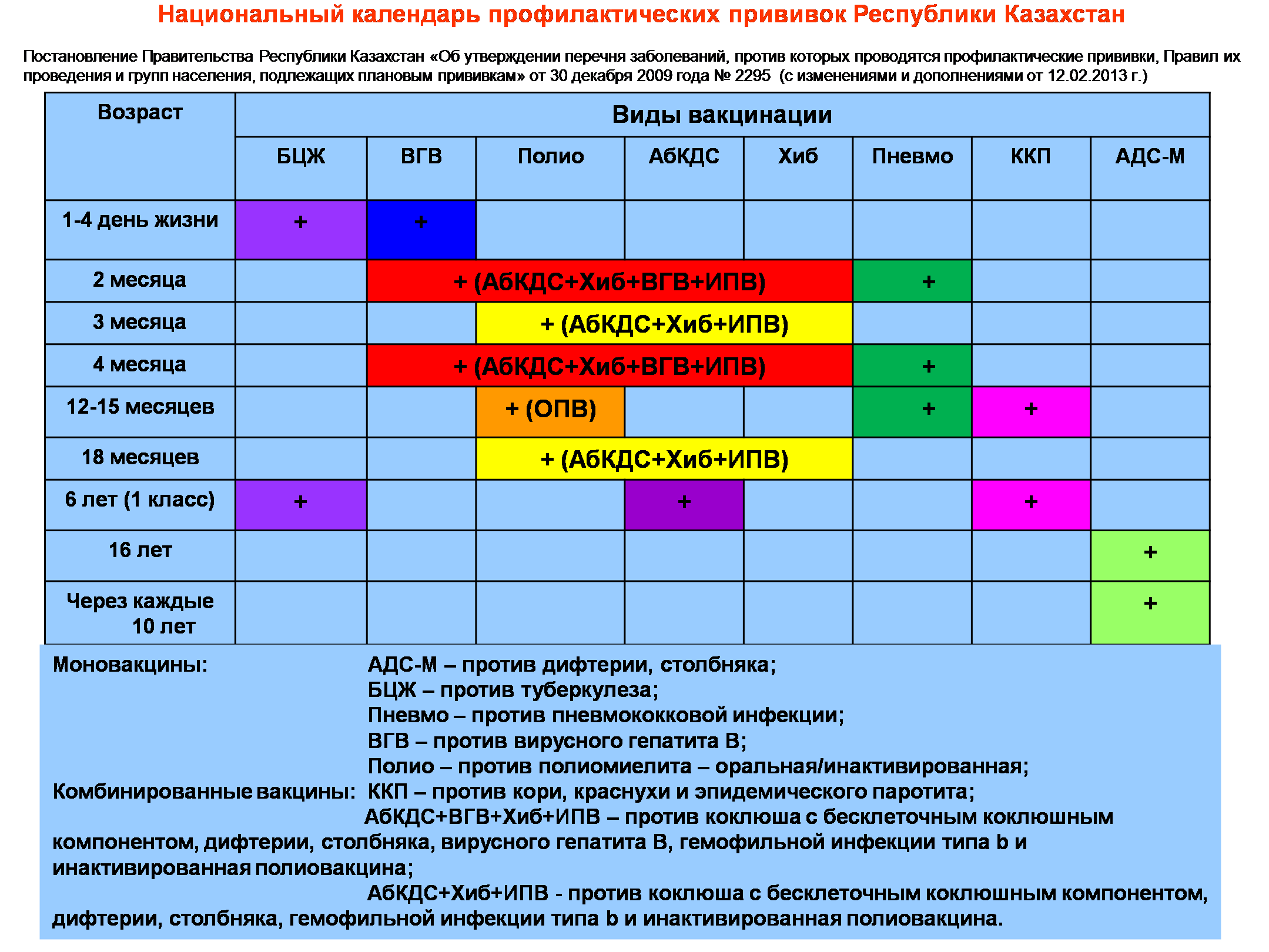 Национальный календарь является официальным документом первостепенной важности по обеспечению эпидемиологического благополучия в нашей стране и соответствует требованиям Всемирной организации здравоохранения по обеспечению безопасности, эффективности и отсутствию интерференции с другими вакцинами.