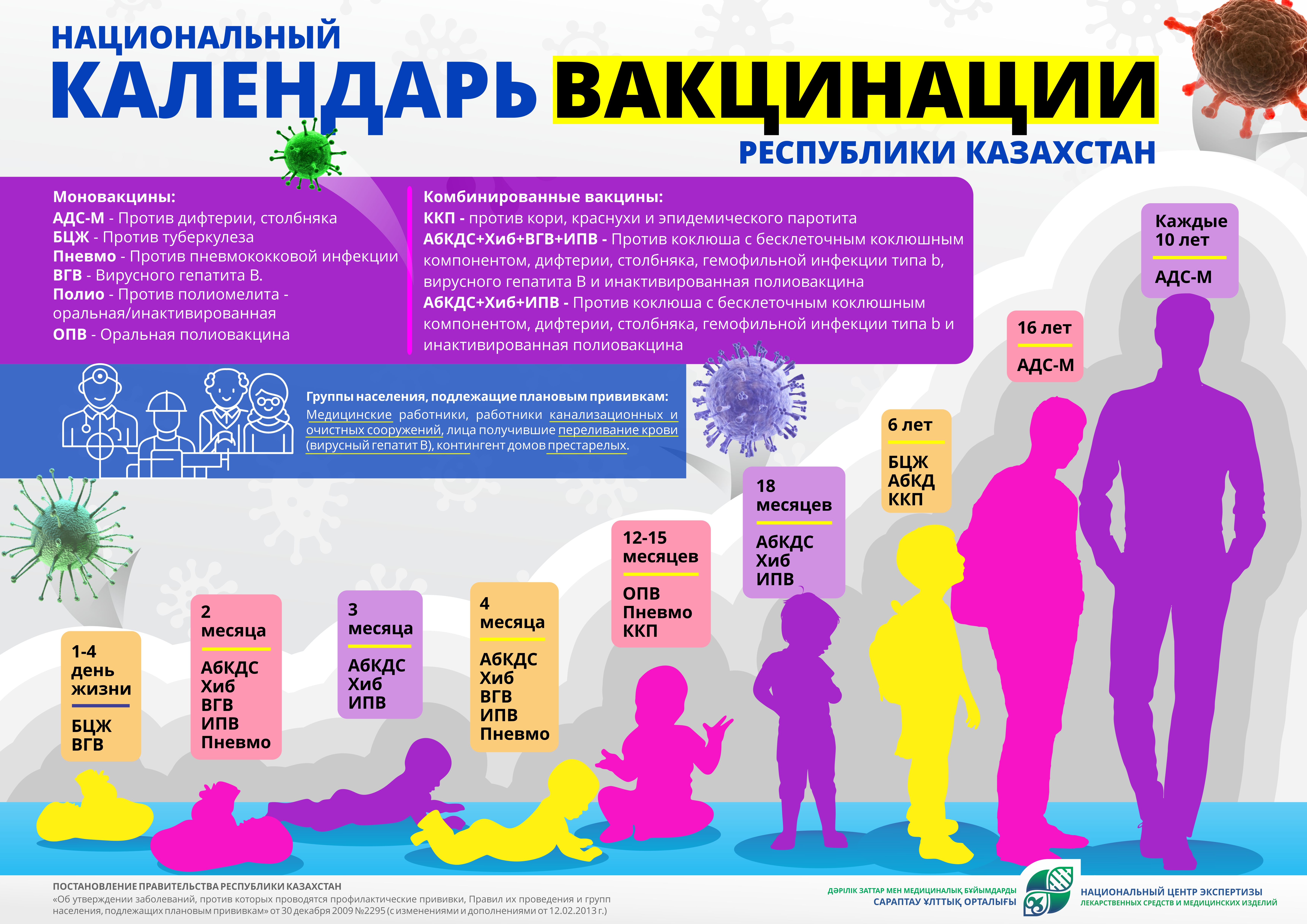 11.02.2020К нам поступил вопрос : «Расскажите о Национальном календаре прививок в Казахстане. Для чего он нужен? Есть ли подобный календарь в других странах, если да, то какие прививки делают детям других государств?»